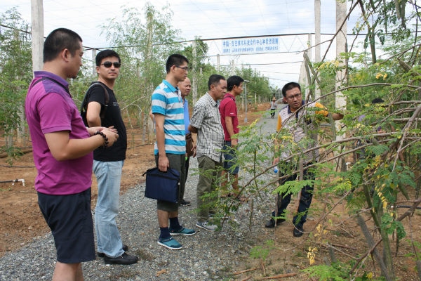 在中古辣木科技合作中心试验示范基地,所长助理李海泉向调研组一行介绍了辣木科研工作的研究情况,主要包括:一是省热作所的辣木研究工作在与古巴互建研究中心、互相交流经验技术及互换种质资源的基础上,现已辐射到老挝、泰国、缅甸、印度等东南亚国家,进一步加大了与周边国家的技术交流合作范围,有利于推动辣木产业迈向国际化的发展道路;二是早在上世纪60年代省热作所就已引进辣木,自2002年开始对辣木进行系统性研究,经过辣木课题组科研人员的潜心研究,不断攻坚克难,现已形成一套集栽培技术、病虫害防治、初级产品加工研发于一身的辣木研究系统,为推动辣木产业的发展提供了技术支撑;三是省热作所现已收集保存辣木种质资源1品种4个种;四是辣木的种植方式根据采嫩梢、采种子及培育新品种的不同需求,采用不同的种植方法;五是省热作所正在积极开展辣木新品种的研发工作,力争研发出自己的辣木品种,促进辣木种质资源的发展迈向新台阶。