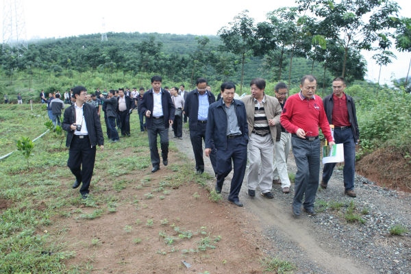 10月14日 ,在云南省农垦总局的统筹安排、精心组织下,云南农垦系统环生态胶园建设现场会在省热作所1000亩生态胶园示范基地召开,参加会议的有云南省农垦总局局长、党委书记白建坤、副局长汪铭、办公室主任张国荣、各州(市)、县农垦局局长、省热作所副所长陈克难、德宏所和红河所的领导,共计60余人。
