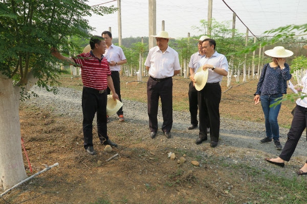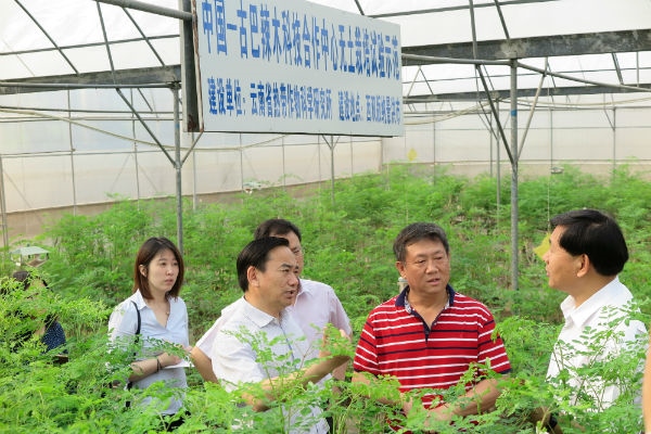 毕美家(右一)一行在辣木无土栽培试验大棚调研