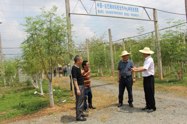 图为在中古辣木科技合作中心试验示范基地调研