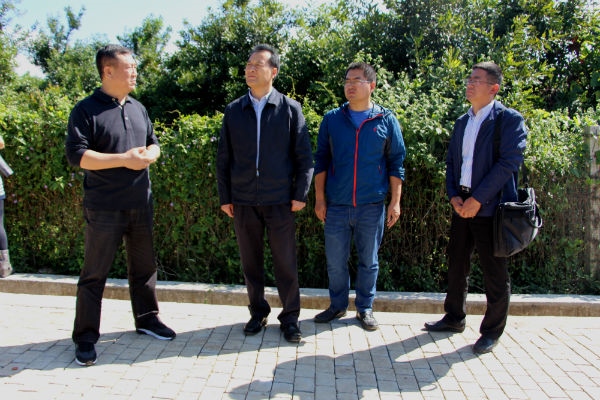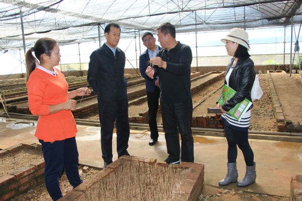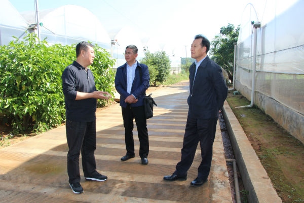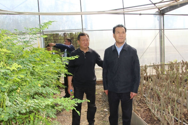 原云南省副省长高树勋(右一)一行在辣木无土栽培试验大棚调研