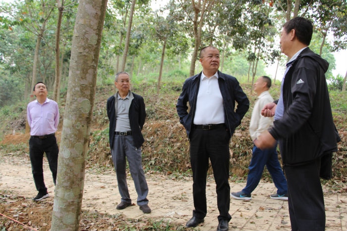 余繁局长一行首先来到科研试验基地了解情况,所长李国华介绍了科研试验基地的橡胶试验布置情况、玉磨铁路和景打高速公路涉及我所土地的情况。