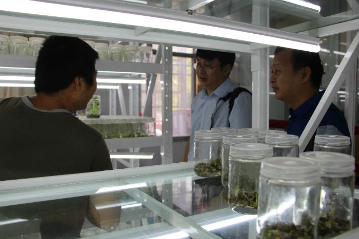 在组培实验室察看组培苗
