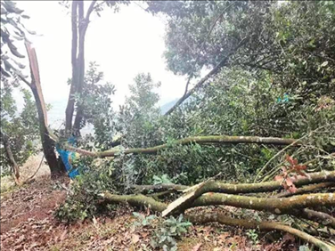 2023年4月下旬~5月中旬,盈江县遭受了3次大风灾害天气。暴雨伴随着阵性大风,将部分澳洲坚果园的植株枝条折断,整株吹倒,甚至连根拔起,给种植者造成较大损失,估计全县受灾澳洲坚果树有几千株之多。