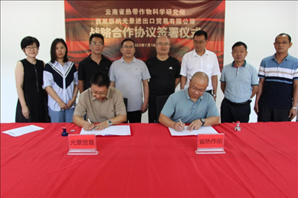 7月18日,云南省热带作物科学研究所与西双版纳光景进出口贸易有限公司在勐腊(磨憨)重点开发开放试验区签署战略合作框架协议,并进行了交流座谈。