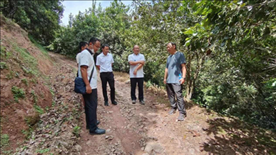 景哈澳洲坚果基地目前还有20多公里生产道路为泥土路,收果季节正值雨季,为进一步保障基地果园生产安全,为生产和道路交通安全做好硬件设施保障,在基地主任钟涛带领下,一行人实地踏勘了基地的林间生产道路,并和工程设计师沟通了改造需求,为接下来全面硬化林间道路做好整体规划。