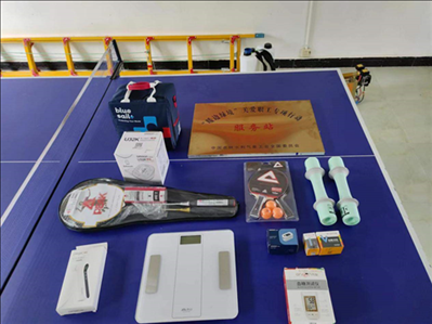 电子血压计、血糖仪、血氧仪和乒乓球拍等物资