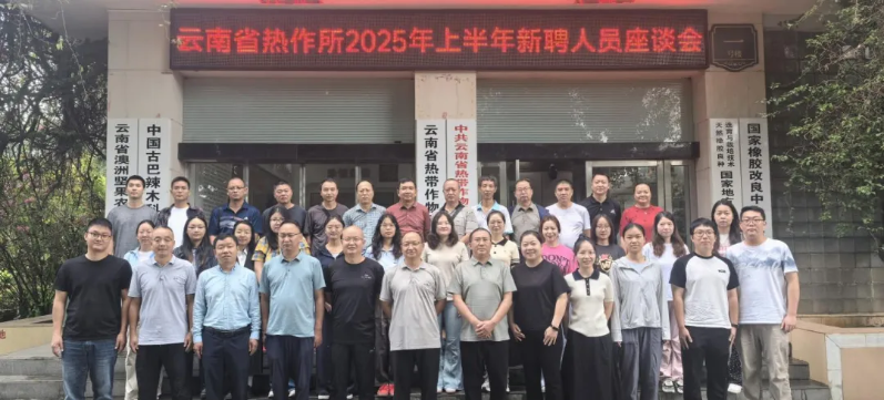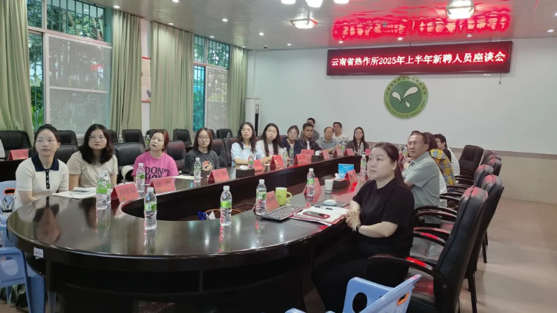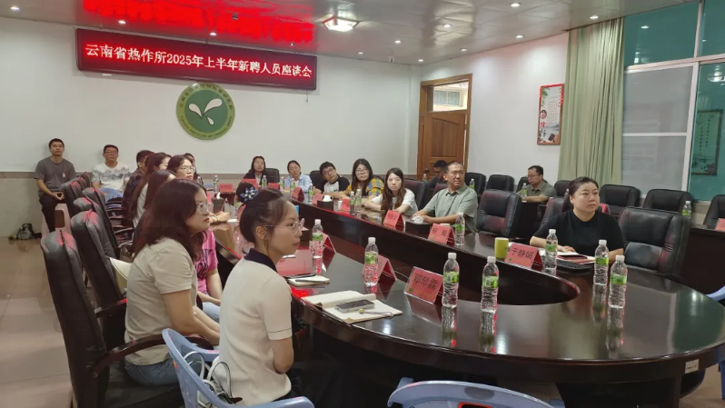 为热烈欢迎2025年上半年新聘硕博人才加入,搭建新老职工沟通桥梁,助力新职工快速融入团队、明确发展方向,为热作科研事业发展凝聚新生力量,云南省热作所于2025年8月26日召开2025年上半年新聘人员座谈会。党政领导班子、机关各职能部门负责人、相关研究中心主任、课题组负责人及16名新聘硕博(博士4名,硕士12名)参加会议。