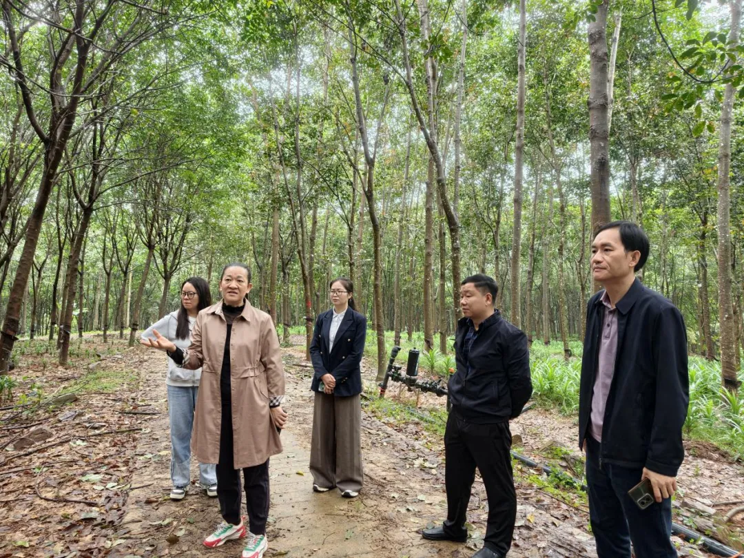 欧阳书记一行与我所科研人员在考察过程中积极交换意见与建议,为推动橡胶林下经济高质量发展提供了多维度的思路与可行性方案。