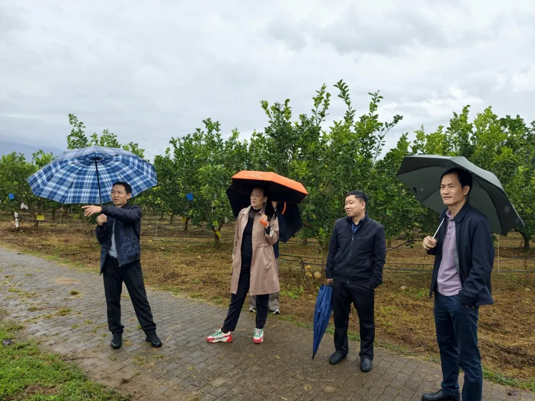 在柚子林下食用菌种植示范点了解农旅融合运营模式
