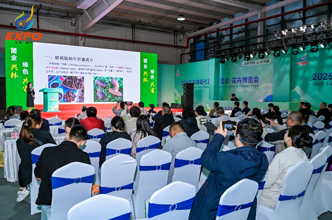2025年12月19日至20日,“2025年林菌产业高质量发展大会暨中国经济林协会林菌分会第二届理事会”在福建省漳州市召开。大会以“菌业兴林·绿色共富——林菌产业高质量融合发展新赛道”为主题,由中国经济林协会林菌分会主办,福建农林大学、福建仙芝楼生物科技集团共同承办。我所热带食药用菌课题组组长张春霞研究员、高锋副研究员参会。
