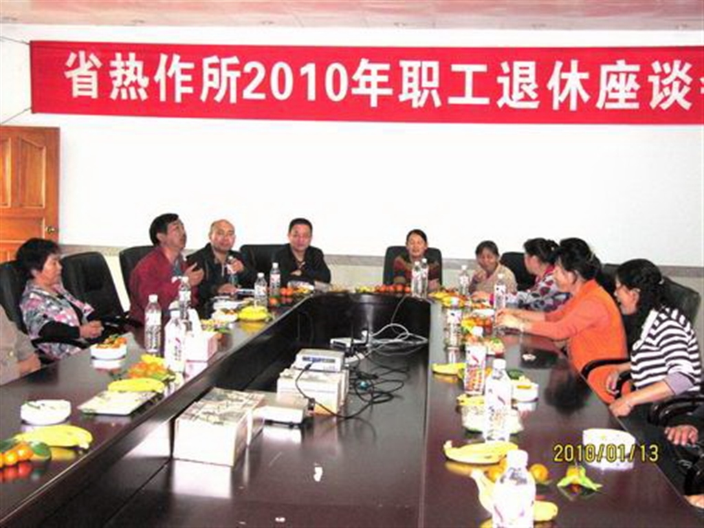 2010年1月13日下午 ,我所召开退休职工座谈会。19名退休职工与我所党政工领导欢聚一堂、共话发展。  座谈会由所党委副书记、工会主席李存生主持,他代表所党政工作了讲话。他指出,各位退休的职工过去为我所的事业发展都做出了重要贡献,现在仍然心系热作所的发展,我们不会忘记你们的贡献,会永远关心你们。热作所的发展离不开退休同志们的支持,希望退休的同志们继续关心和支持我所的发展,畅所欲言,为单位的发展...