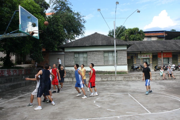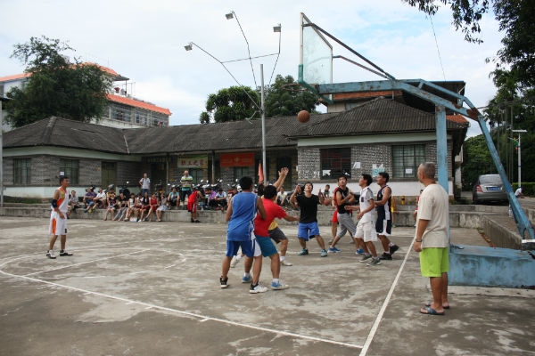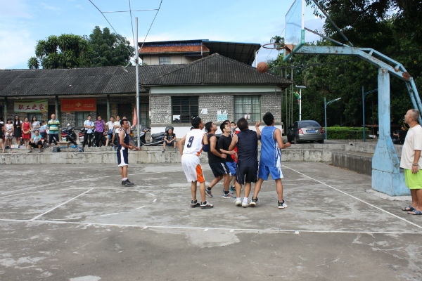 下午6点30分,篮球比赛在老篮球场如期举行,篮球赛按年龄分为两个队,即年龄在30岁以上的组成一个队;年龄在30岁以下的组成一个队。球场上,随着裁判的一声哨响,双方随即展开激烈的角逐,站在一旁的新老职工目不转睛的观看着篮球比赛,并不断的为两支球队呐喊、加油,虽然比赛进行到第三局时,骤然下起瓢泼大雨,导致比赛戛然而止,但是这丝毫没有影响到大家的热情,这是一次没有比赛结果却令人印象深刻的比赛,因为在这样的场景下,比赛的结果已经不再重要,留在我们脑海里的是球员们在赛场上比拼时的精彩瞬间,他们的精彩表现给同事们在工作之于带来了欢乐,让大家释放了工作压力,可以忘乎所以的观看比赛。大雨终止了比赛,但也为大家的沟通交流提供了条件,在省热作所职工之家的房檐下,大家欢快的交谈着,增加了相互间的了解,也增进了同事间的友谊与凝聚力,达到了活动的目的。