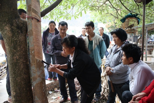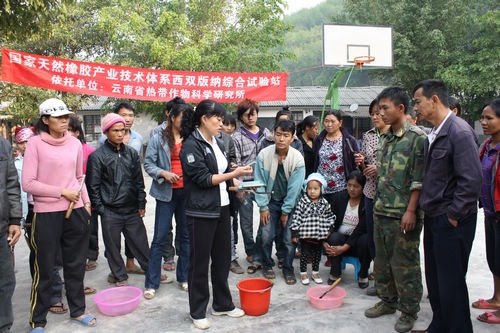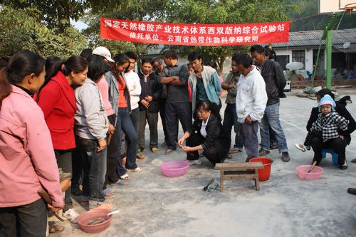 天然橡胶是西双版纳州种植面积最大、从业人员最多、经济效益最显著的农业产业,也是西双版纳的主要支柱产业之一。但是据了解,西双版纳州民营橡胶业在割胶技术方面仍然存在基本技能差、知识匮乏、缺乏系统培训、割胶技术标准贯彻和执行差等重要问题,制约着生产力的提高。针对这些问题,驻西双版纳州景洪市辖区内的云南省热带作物科学研究所,每年都会派出所内的相关负责人和技术人员去乡镇、进农场开展各种不同形式的割胶技术培训,为推进科学割胶及科学管胶起到了极大的促进作用。