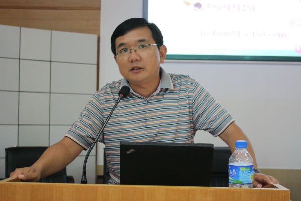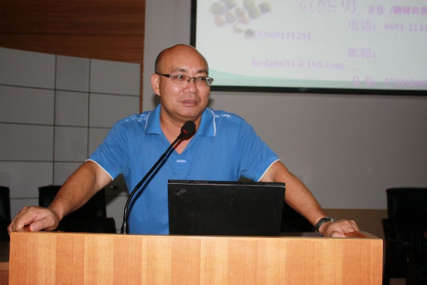 接着,省热作所所长助理、辣木科技中心主任李海泉首先向大家介绍了辣木研究工作的相关情况:省热作所最早于上世纪60年代开始引种辣木,2002年开始成立团队进行系统性研究,目前已收集保存辣木种质资源1品种4个种;建成辣木试验示范基地300余亩,制定出《辣木露地无公害栽培技术规程》和《辣木基质栽培技术规程》两项技术体系;辣木鲜叶已获批国家新资源食品,对辣木花、果、枝等其它部位的安全性评价及新资源食品的申报工作正在逐步实施;辣木新品种的培育已发展到太空育种领域,为辣木新品种的培育筛选提供了新途径;经辣木课题组研究发现,辣木营养价值异常丰富,具有很高的食用价值,其辣木籽含有阳离子电解质,可用于净化水,起到灭菌祛浊的作用;经过多年的研究探索,现已研发出辣木叶粉、辣木茶、辣木精油、辣木叶片等初级产品;在国家领导人的关怀下,通过农业部协调部署,2014年4月12日中古辣木科技合作中心在省热作所挂牌成立,现已建设有中古辣木种质资源圃、中古辣木无土栽培试验大棚、辣木间作试验区、辣木种植密度试验区等试验示范基地。其次,所长助理李海泉对参训人员进行辣木栽培技术培训,培训的主要内容有:一是选择种植土地,辣木种植地的选择是栽培辣木的第一环节,要选择海拔在2000米以下,无霜,水肥充足、土层深厚、向阳避风且重金属含量不超标的地块进行种植;二是培训辣木育苗、定植幼苗技术,施肥管理,采收技术,水分管理,树体管理,修剪技术,栽种模式,虫害、病害防治技术等方面的内容。