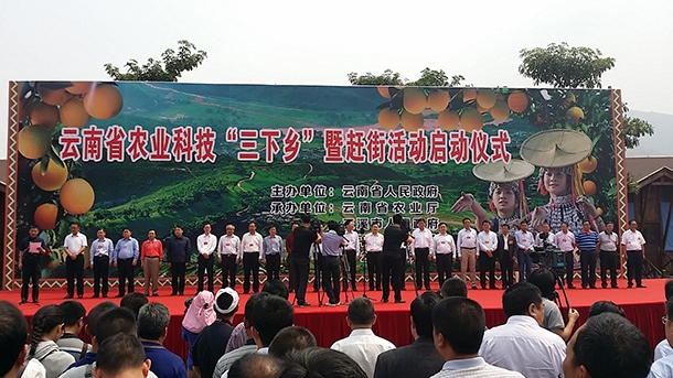 3月22日 ,云南省农业科技“三下乡”暨赶街活动启动仪式在玉溪市新平县戛洒镇正式启动。本次活动由云南省人民政府主办,云南省农业厅、玉溪市人民政府、新平县人民政府承办,省委副书记钟勉宣布活动启动,副省长张祖林在启动仪式上致辞。 云南省农垦总局作为16个主要参加单位之一参与活动。