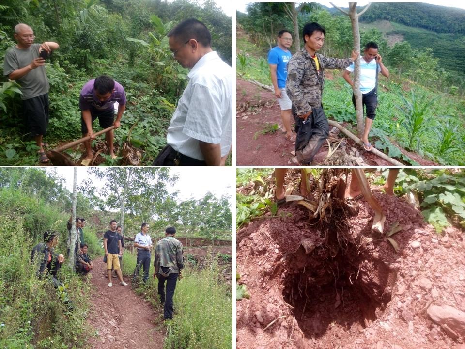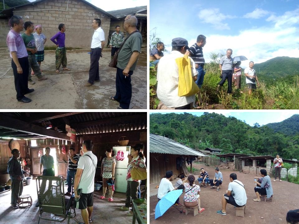 2016768日,云南省热作所党委书记李存生、总农艺师陈克难、原副所长杨庄、纪委副书记杜学新、种苗基地主任钟涛等一行12人到曼庄村委会各挂钩村小组进行“挂包帮”“转走访”帮扶工作,通过深入贫困户家中并进入田间地头查看土地开垦和挖穴及回穴情况,相关领导讨论决定抓住雨季时机尽快完成苗木发放和督促完成种植。