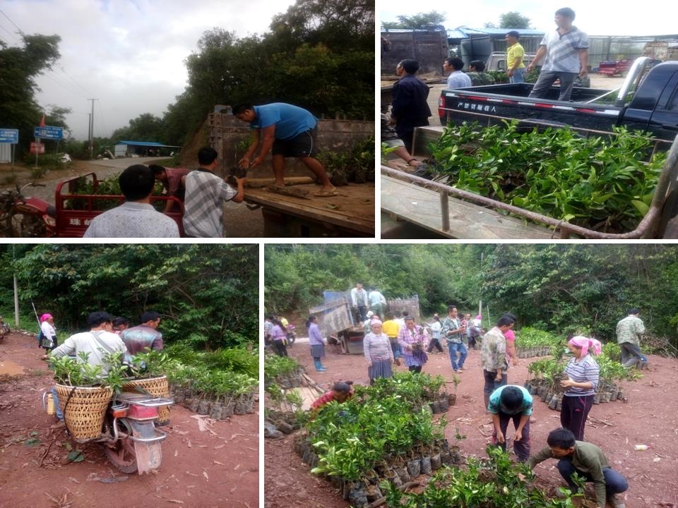 根据省热作所《象明彝族乡曼庄村委会贫困村脱贫行动计划》,结合曼庄村委会我所挂钩的88户贫困户实际情况及贫困户申报的苗木种植数量,自 79  731 给相关贫困户免费发放优质果苗16260株,包含澳洲坚果苗12860株和柚子苗3400株。其中瑶寨4600株、苗寨5800株、曼松3000株、么连2660株、万亩茶厂200株。此次发放的果苗是由省热作所种苗基地嫁接改良的品种。