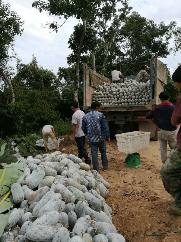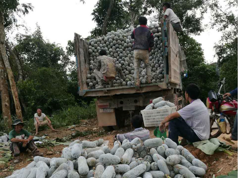 2016年11月初,在曼庄的地边,称重、搬运,装车等工作有条不紊的进行,大家自觉地排好队伍等待收购,此次收购香冬瓜约8.3吨。贫困户陶胜开心的说:“我们象明的香冬瓜口感香、甜、面,可炒食、做汤、生腌,也可制成冬瓜蜜饯等。感谢省热作所为我们解决了不少实际困难,我们感到很暖心。”