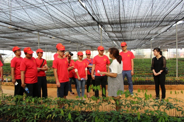 4月28日上午,象明乡团委一行来到云南省热作所科研试验基地参观学习,在农业部景洪橡胶树优良品种籽苗繁殖基地,科技人员介绍了橡胶籽苗芽接的过程、取材标准、籽苗出圃周期等内容;在澳洲坚果种苗基地,科技人员介绍了坚果种苗的嫁接技术、种植管理方式、产量、市场价值等内容;在中古辣木科技合作中心的试验示范基地,科技人员介绍了辣木富含的营养元素、食用价值及功效;在热带水果种植基地,科技人员介绍了水果的种植方式、水肥管理、市场经济价值等内容。