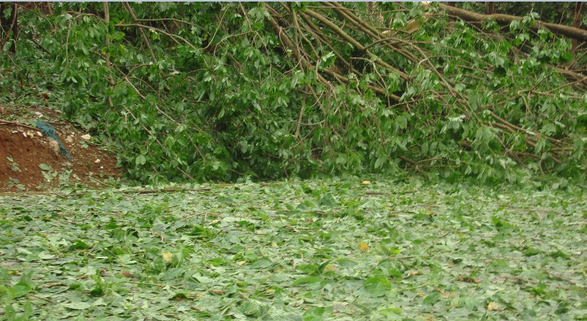 冰雹多发生在 2—5 月,冰雹极易毁坏幼龄橡胶树树干枝条,落花、落果、落叶,造成橡胶减产