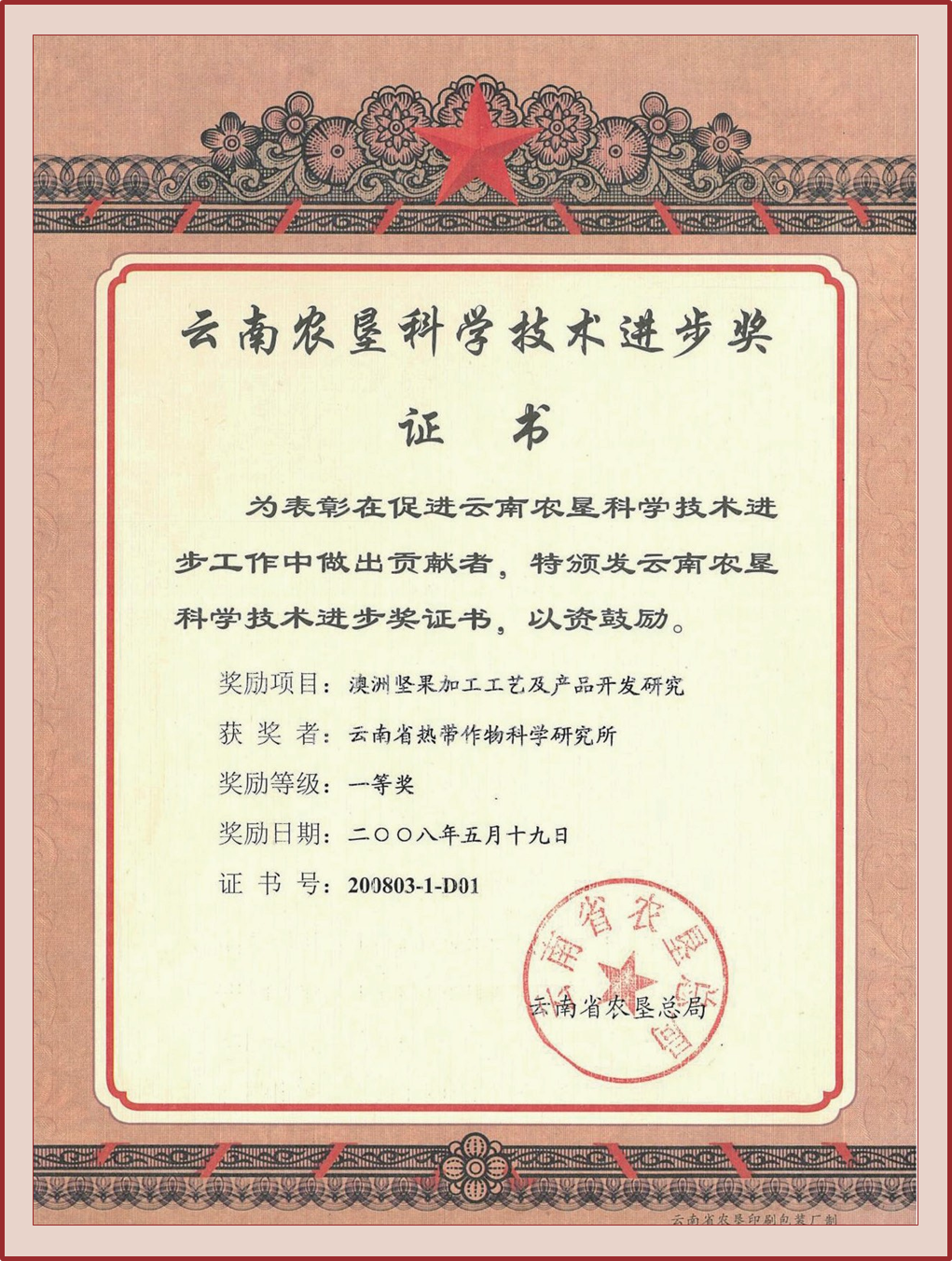 该项技术经中试和试生产检验表明已具备产业化应用推广的条件,将为今后云南大面积澳洲坚果产品加工起到重要作用。