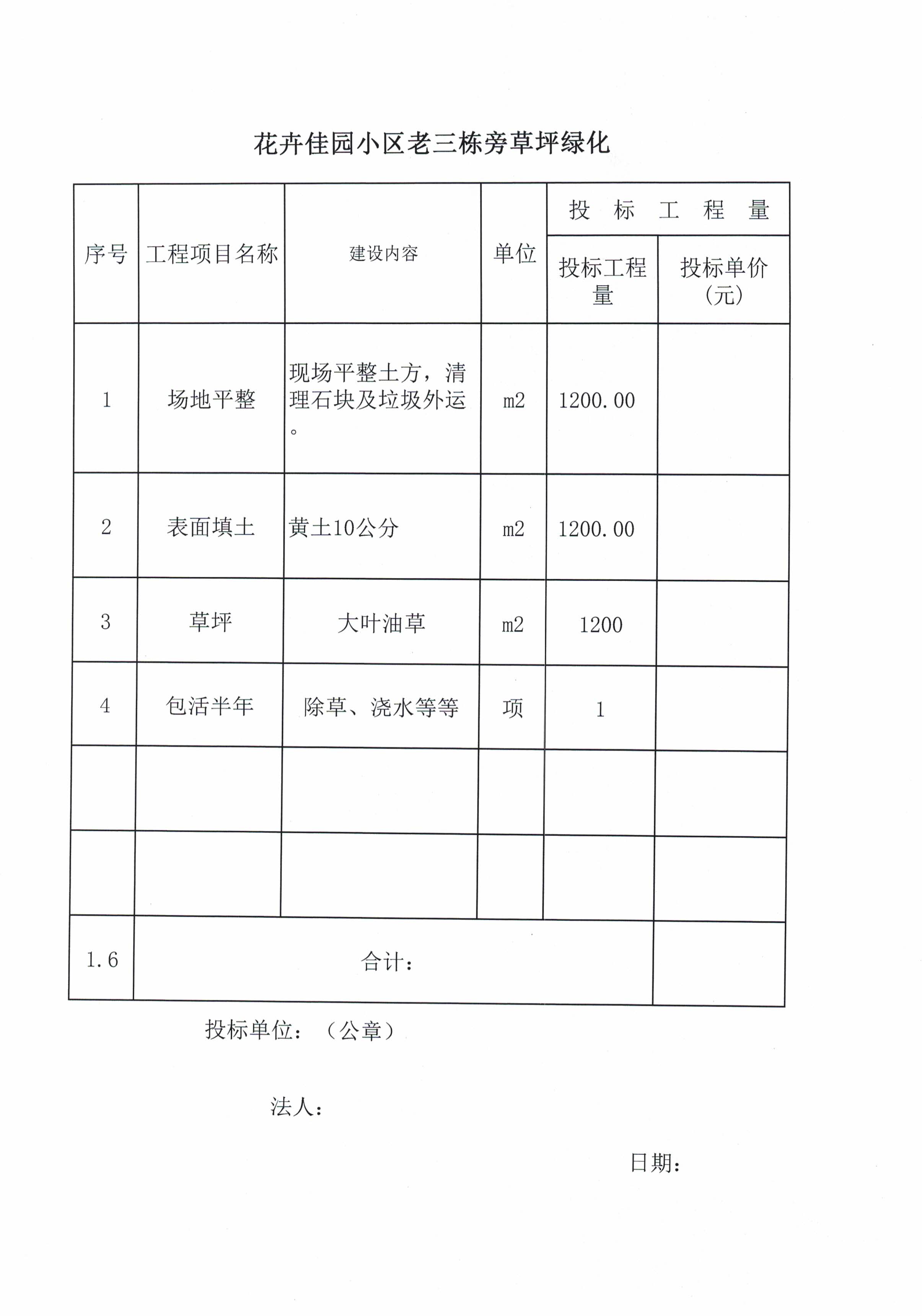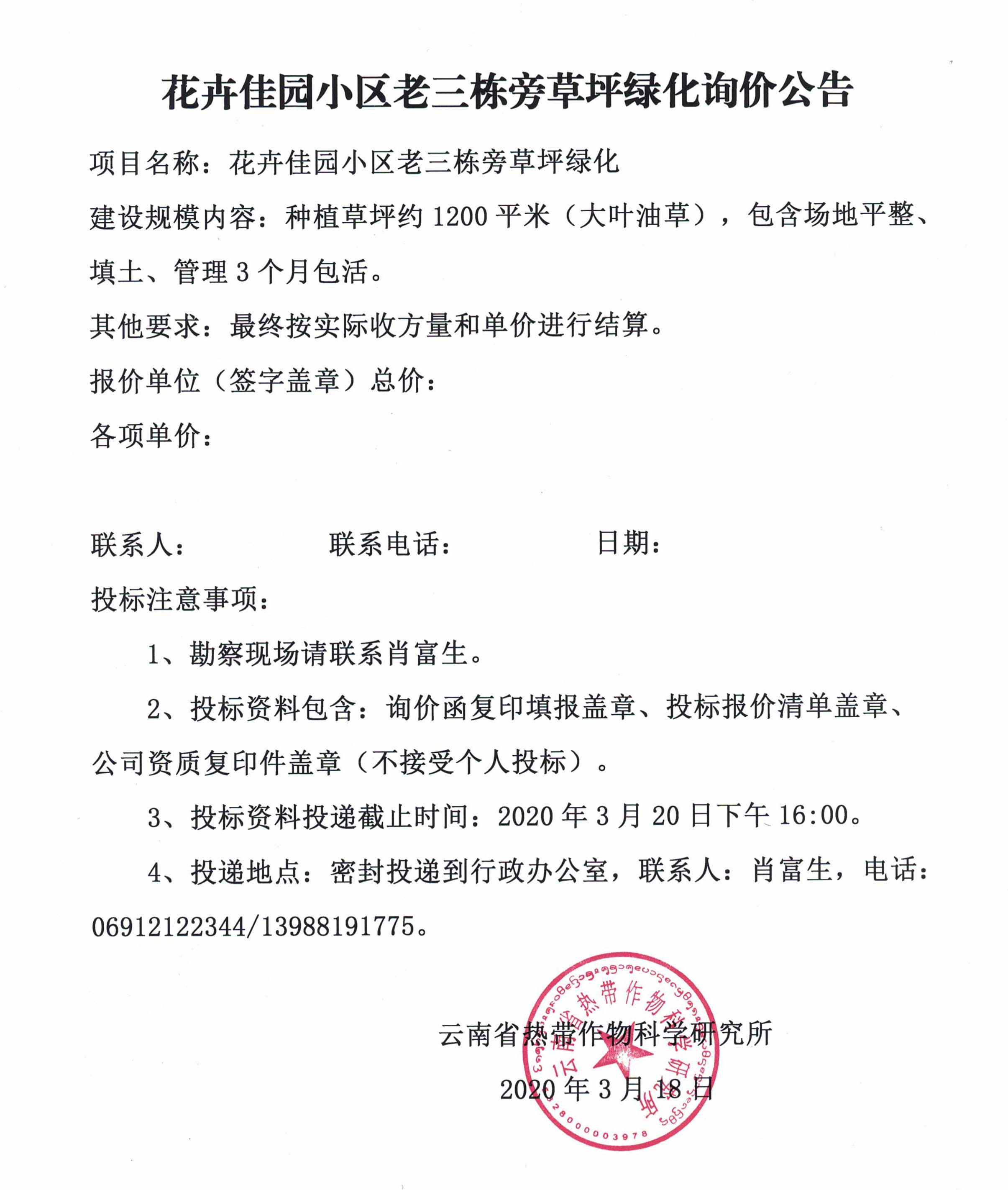 花卉佳园小区老三栋旁草坪绿化询价公告